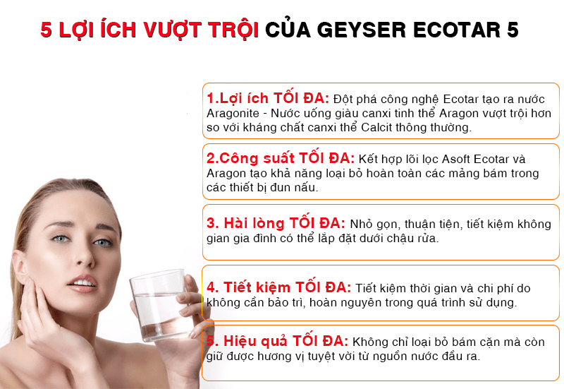 Siêu phẩm máy lọc nước nano Geyser Ecotar 5 là dòng máy đã được nâng cấp phù hợp với nguồn nước Việt Nam. Chống bám cặn nhưng vẫn giữ được khoáng chất trong nước.