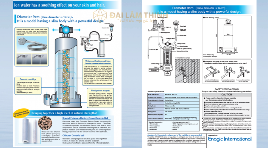 Hệ thống lọc hộp mực lọc có tác dụng loại bỏ clo và vi khuẩn hiệu quả, để lại cho bạn cảm giác tươi mới, tiếp thêm sinh lực. Bảo vệ làn da mỏng manh của bạn khỏi những tác hại của nước máy. Bộ lọc than hoạt tính bên trong bằng gốm sứ Futama cao cấp.